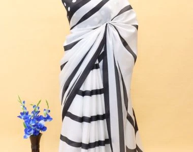 BLESSBURY ready to wear striped bollywood chiffon, Georgette Saree (black, white