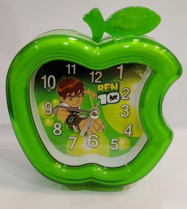 Green Plastic Apple Shape Analog Table Clock For Home .