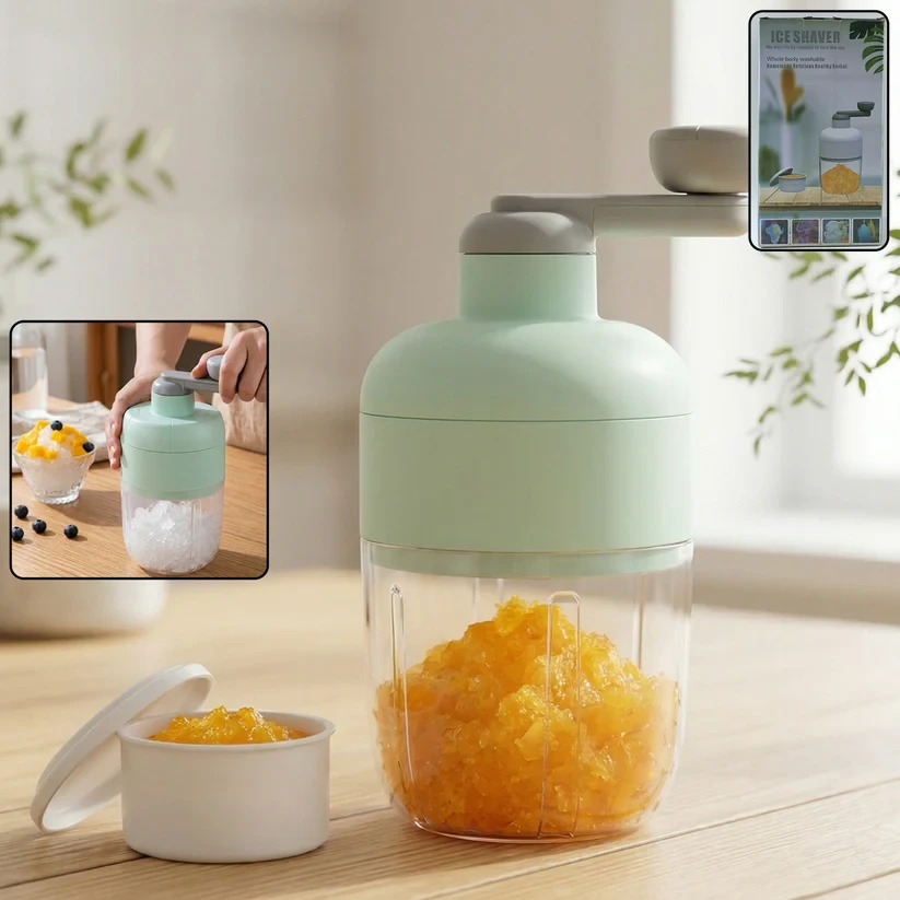 manual ice crusher, shaved ice machine, hand crank ice shaver, multipurpose ice shaver, snow cone maker, slush drink machine, dessert ice shaver, kitchen ice crusher, portable ice shaver, manual snow cone machine, hand operated ice crusher, ice shaving tool, summer drink maker, frozen dessert maker, countertop ice shaver, home ice crusher, beverage ice shaver, manual slush machine, DIY snow cone shaver, ice crushing kitchen gadget