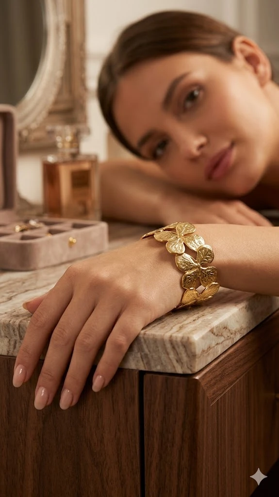 Intricate Leaf Detailing: High-relief texturing on every clover petal provides a sophisticated 3D depth, offering a "couture" look that mimics high-end artisanal gold.