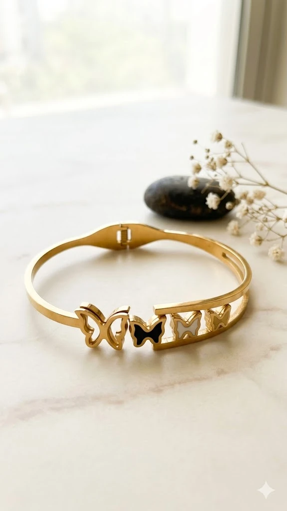 Ergonomic Bangle Shape: The oval-contoured band is designed to sit flat against the wrist, preventing rotation and ensuring the butterfly bar remains the focal point.