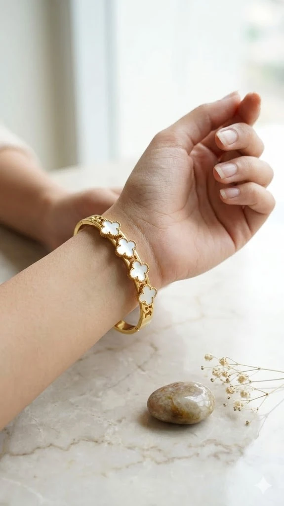 Mother-of-Pearl Inlays: Each clover is inlaid with genuine, high-luster Mother-of-Pearl, providing a natural, iridescent glow that catches the light with every movement.