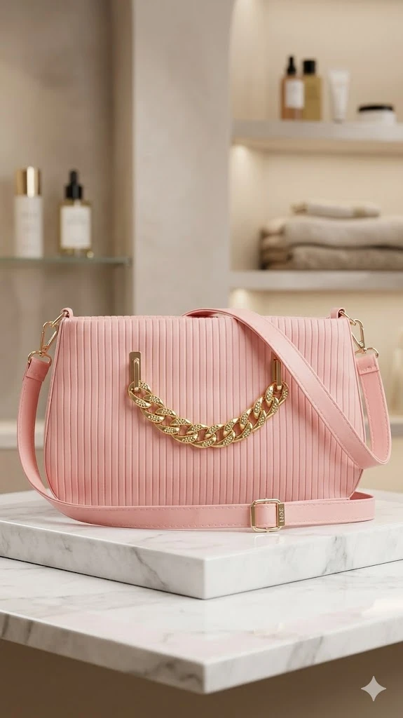 Precision Vertical Ribbing: The body of the bag is crafted from high-quality vegan leather featuring a fine, vertical ribbed texture. This linear detailing adds structural depth and a sophisticated matte finish to the soft pink palette.