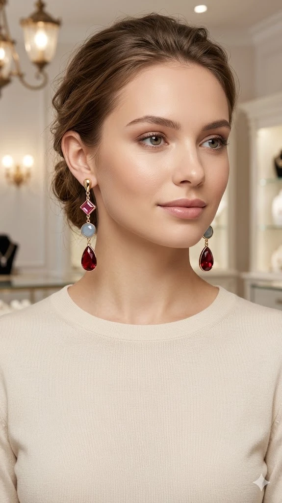 Color Story: A high-contrast "Berry & Sky" palette. The pops of neon pink and rich ruby are perfectly balanced by the calming blue stone, creating a look that is both energetic and balanced.
