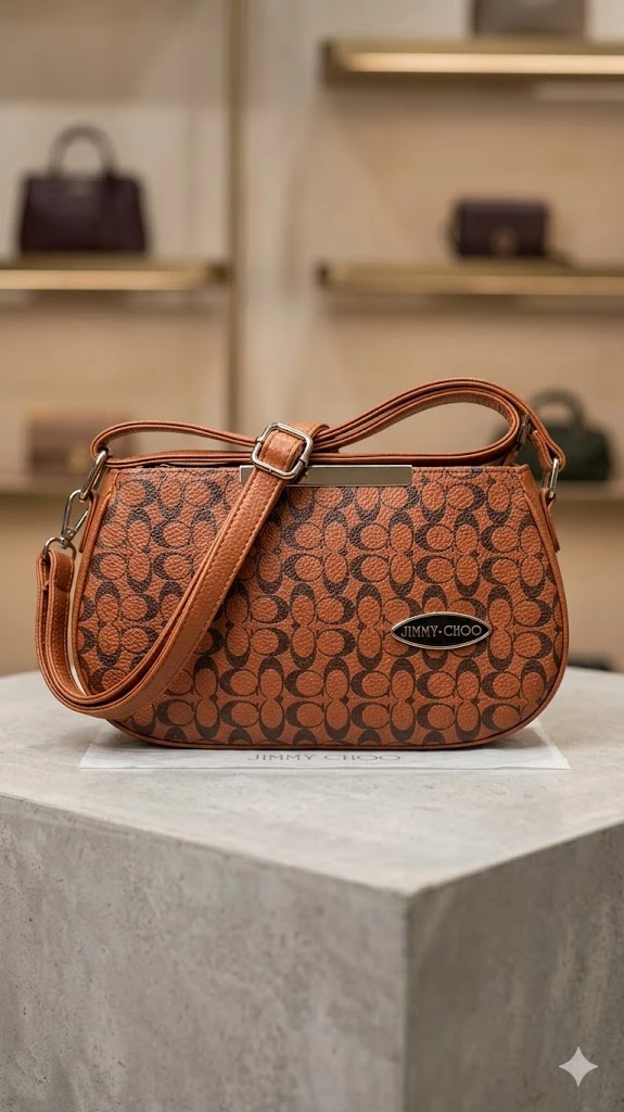 Rich Cognac Trim: The warm tan leather-style trim and matching adjustable strap complement the monogram print for a cohesive, designer finish.