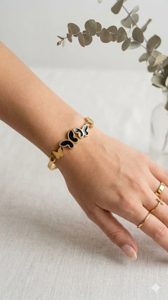 Dynamic Arrangement: The centerpiece features multiple butterflies in graduating sizes, creating an organic "flight" pattern across the wrist.