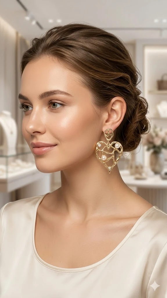 Aesthetic: Romantic Glamour meets Contemporary Art. The "distressed" gold finish gives them a vintage, heirloom quality, while the oversized heart silhouette keeps them firmly on-trend.