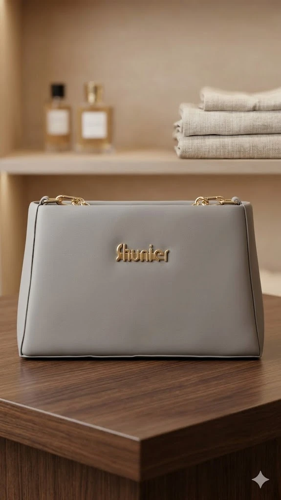 Polished Gold Script Branding: The front is adorned with a refined, gold-tone "Shunier" script emblem. The delicate lettering adds a touch of high-end jewelry-like detail without overpowering the bag's minimalist aesthetic.