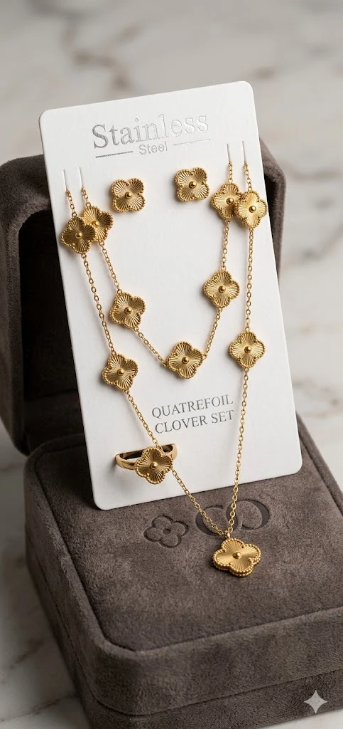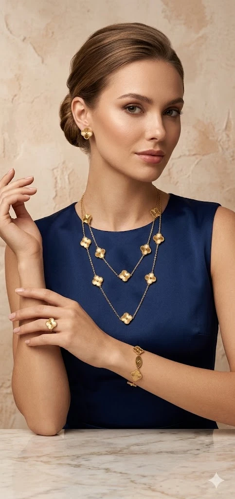 Station Bracelet: A delicate chain bracelet adorned with matching clover charms, designed to catch the light with every movement.