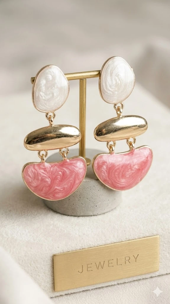 2. Texture & Finish: The white and pink elements feature a captivating "marble swirl" enamel finish, offering a dreamy, cloud-like texture. The central gold bar acts as a luminous anchor, providing a brilliant metallic contrast.