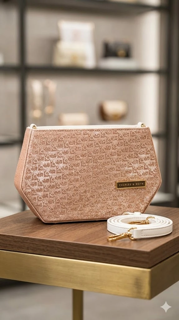Signature Gold Hardware: Accented with a polished gold-tone logo plate that perfectly complements the warm rose-gold tones of the fabric.
