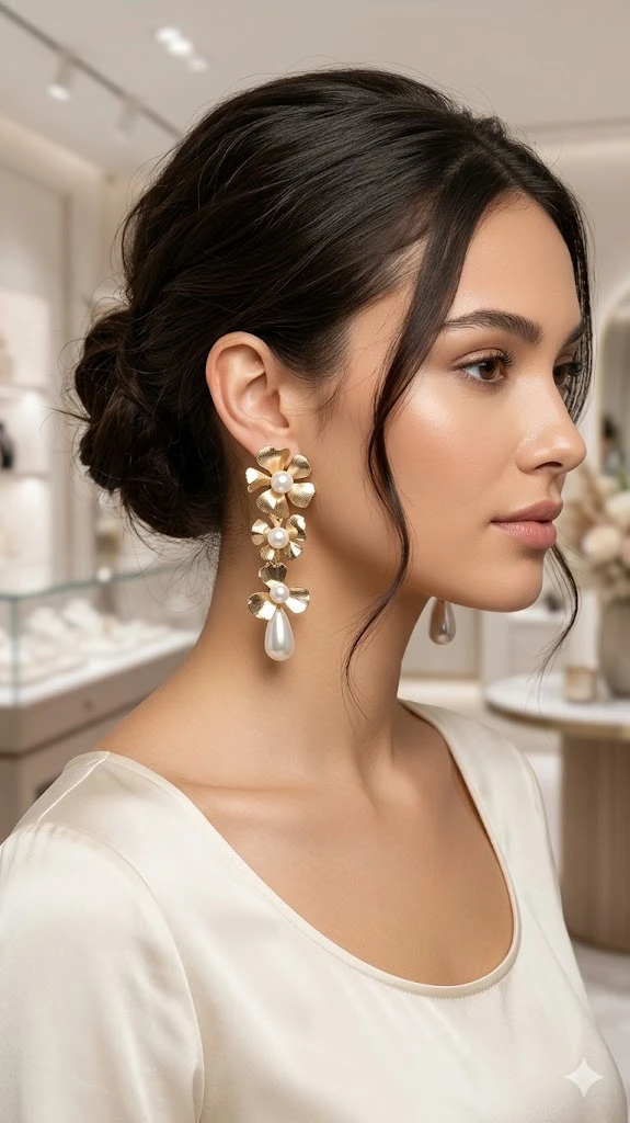 4. Aesthetic: Classic Elegance / Bridal Couture. These statement drops elongate the neck and add an immediate sense of "old-world" luxury to modern attire.