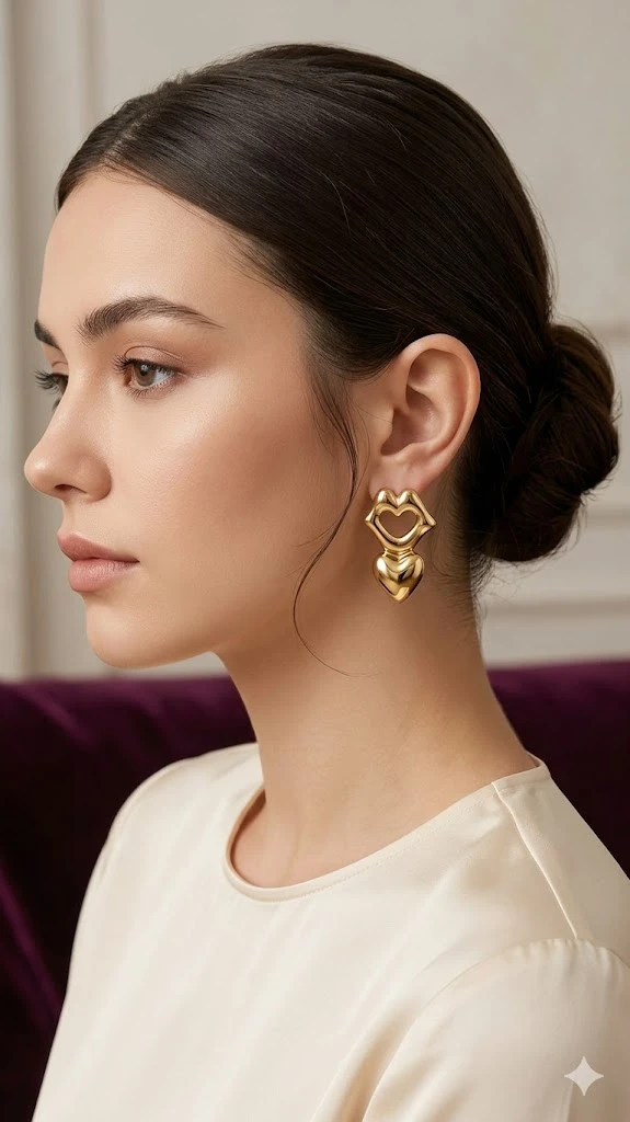 1. Chic Avant-Garde Design: A creative combination of a hollowed-out "lip" silhouette that drops into a solid, high-shine golden heart.