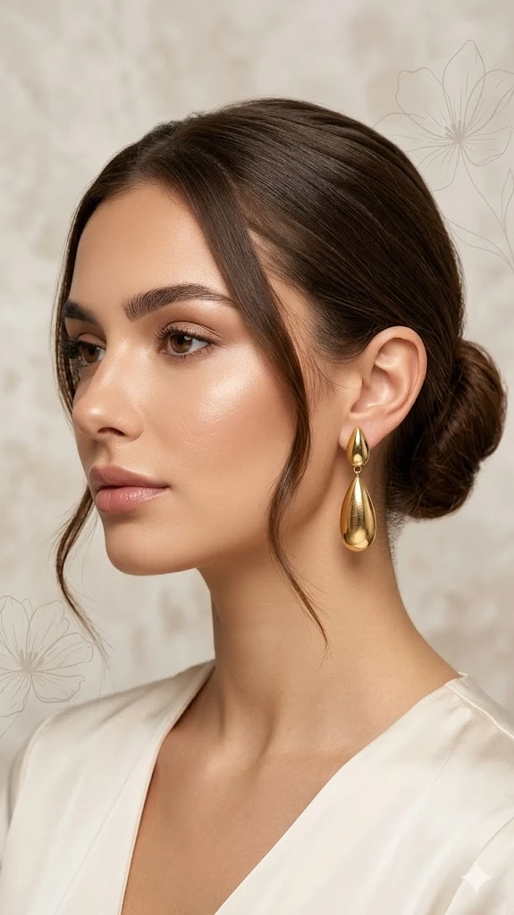 3. Architectural Fluidity: Inspired by organic water droplets, these earrings offer a soft yet bold sculptural appeal that complements any face shape.