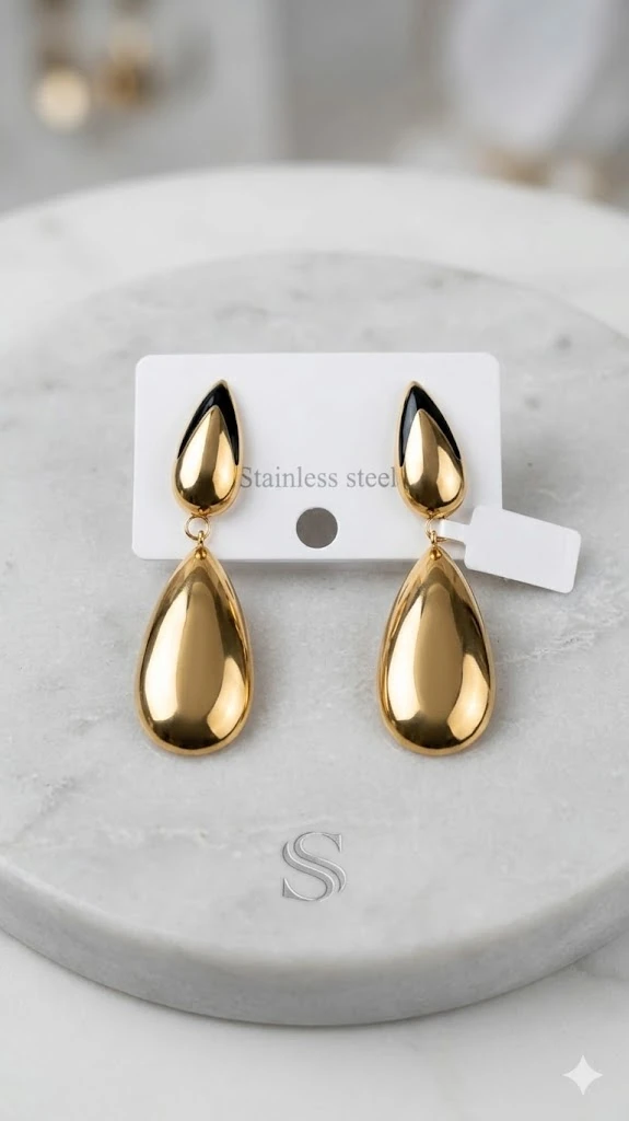 4. Premium Stainless Steel: Expertly crafted for longevity; these earrings are hypoallergenic, tarnish-resistant, and maintain their golden brilliance over time.