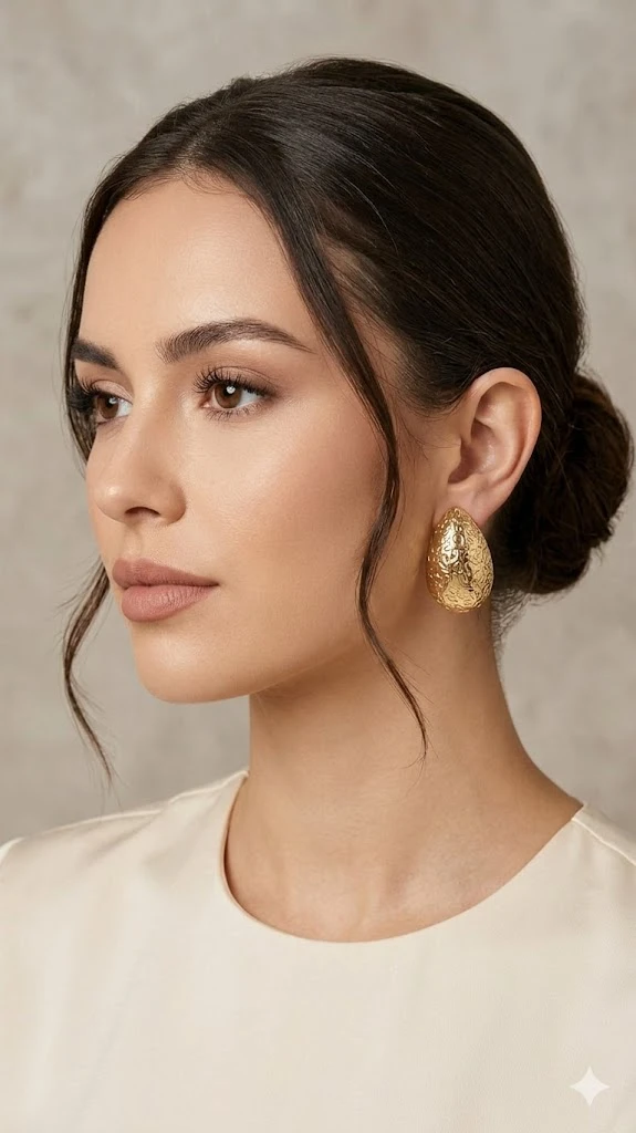 Modern Teardrop Silhouette: The elegant, tapered shape provides a flattering lift to the face and a contemporary twist on classic stud earrings.