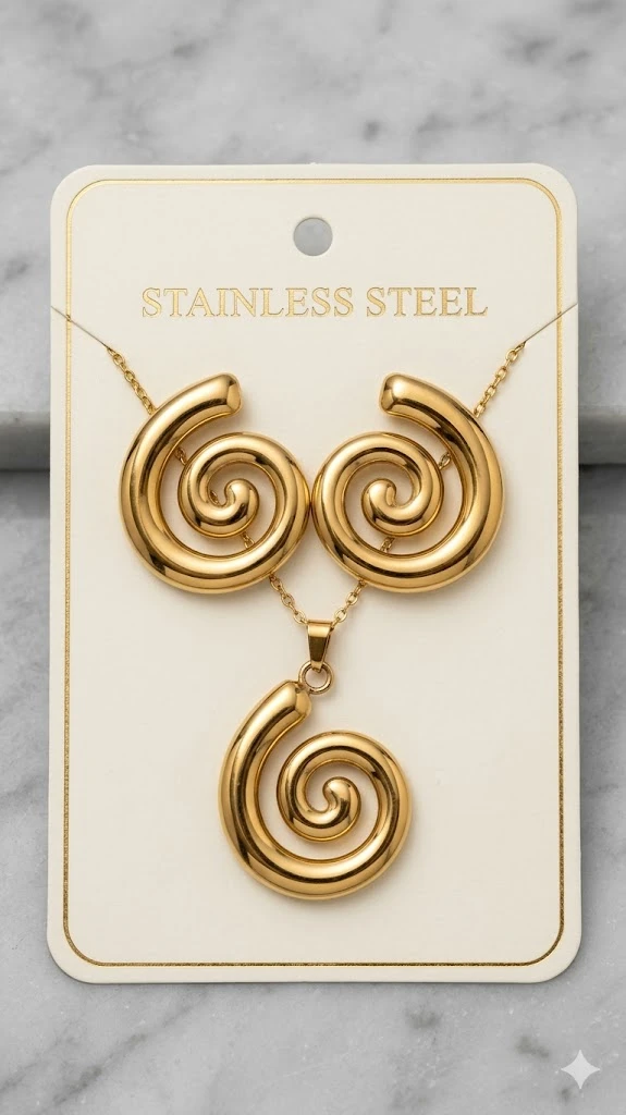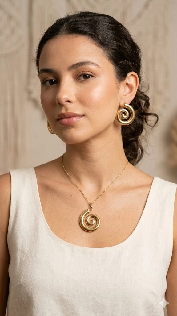 5. Matching Spiral Earrings: Symmetrical, bold studs that mirror the pendant for a high-impact, coordinated aesthetic.