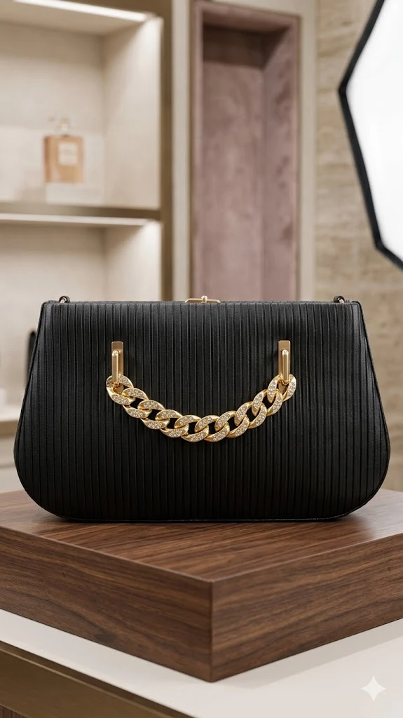 4. Elegant Clutch: The strap can be detached or tucked in, allowing the jeweled chain to act as a decorative hand-grip.