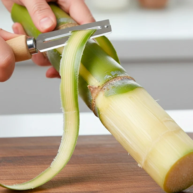 multipurpose stainless steel vegetable peeler, manual fruit and vegetable peeler, wooden grip handle peeler, kitchen peeling tool, fruit and vegetable peeling tool, stainless steel kitchen peeler, ergonomic handle vegetable peeler, durable manual peeler, home kitchen peeling gadget, kitchen utensil for peeling, vegetable and fruit prep tool