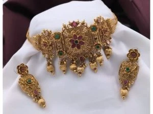 Set for Women Galaxy Creation Kundan Choker Necklace & Earings with