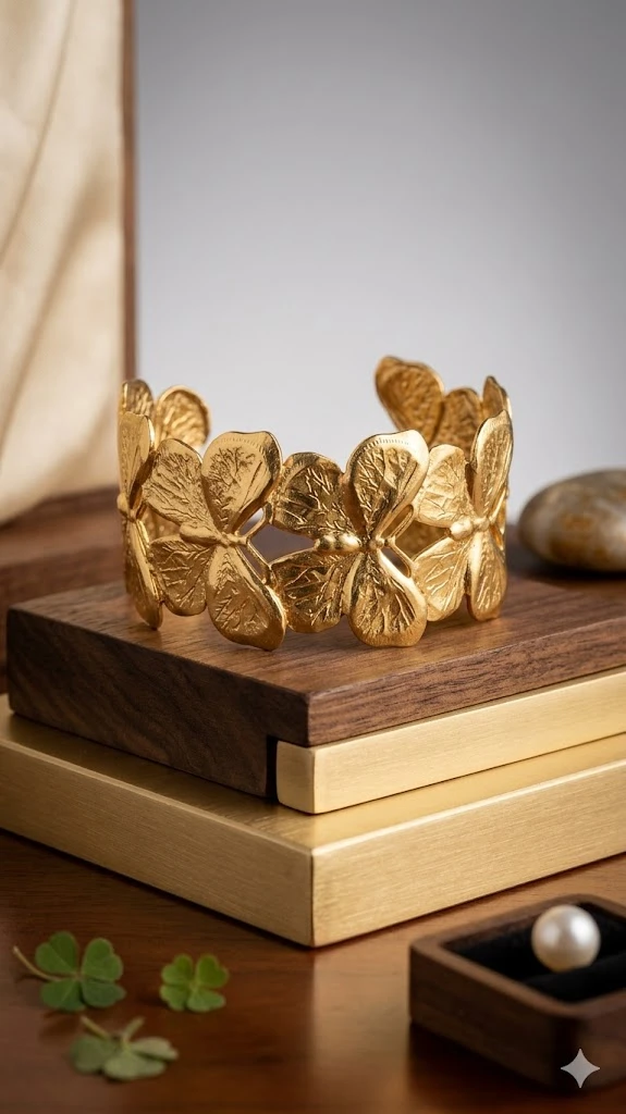 Intricate Leaf Detailing: High-relief texturing on every clover petal provides a sophisticated 3D depth, offering a "couture" look that mimics high-end artisanal gold.