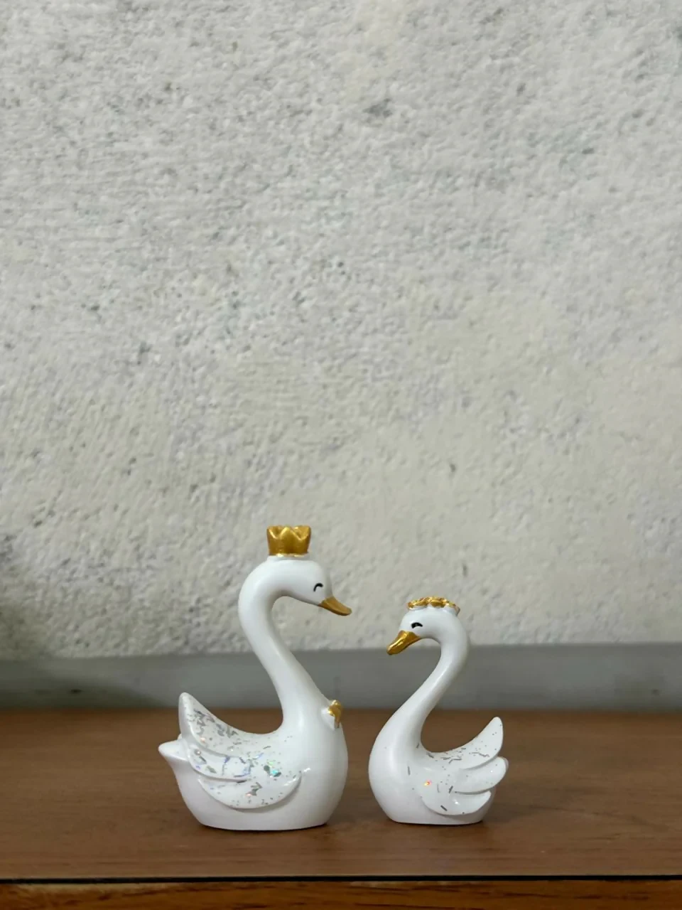 Bring elegance and romance into your space with this beautiful White Swan Couple Showpiece. Designed with gold crowns and delicate detailing, this graceful pair symbolizes eternal love, loyalty, and togetherness — making it a perfect décor piece for bedrooms, living rooms, side tables, offices, and gift hampers. A charming choice for anniversaries, weddings, Valentine’s Day, and couple gifts.