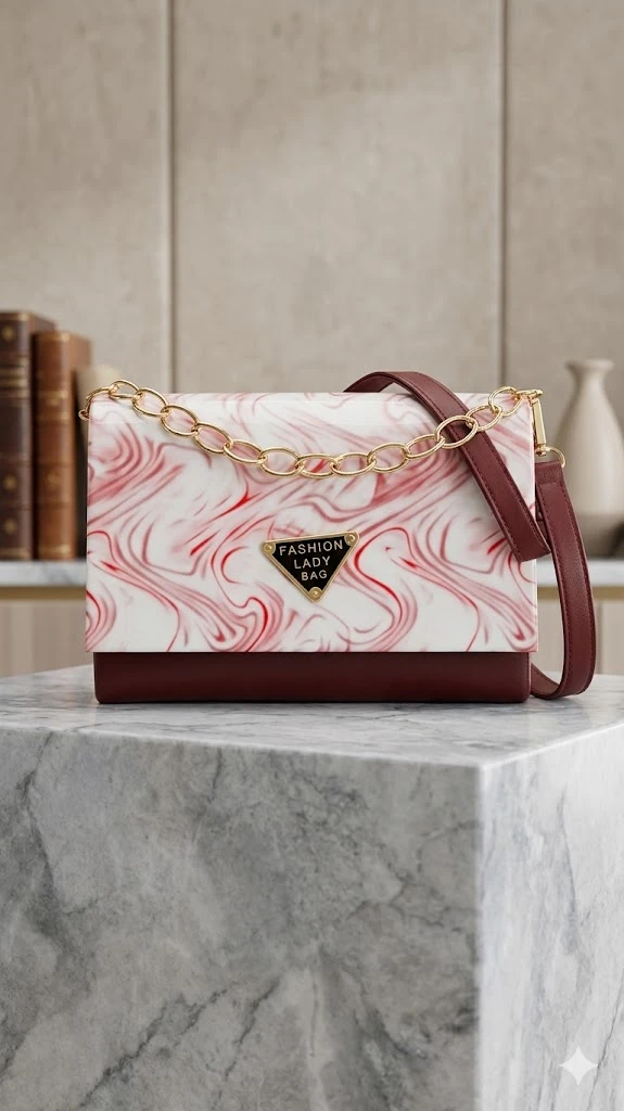 1. Vibrant Marble-Effect Flap: A glossy, high-definition swirl pattern in deep ruby and rose tones, offering a unique "liquid" aesthetic that ensures no two looks are exactly alike.