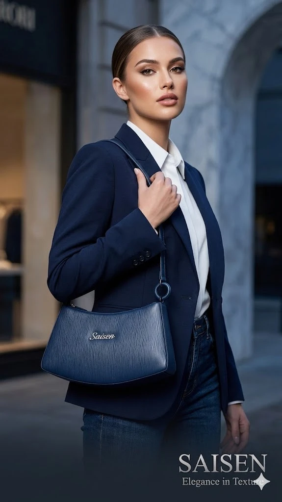 Premium Hardware: Adorned with the polished silver-tone Saisen emblem, adding a touch of high-fashion refinement.