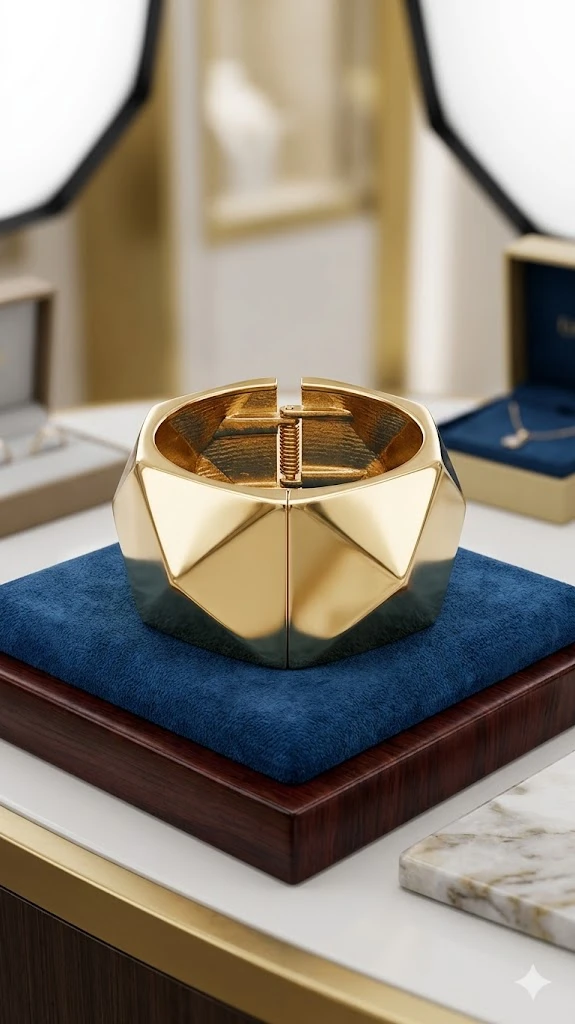 Faceted 3D Design: A unique, multi-dimensional geometric structure that provides a sharp, contemporary edge to any outfit.