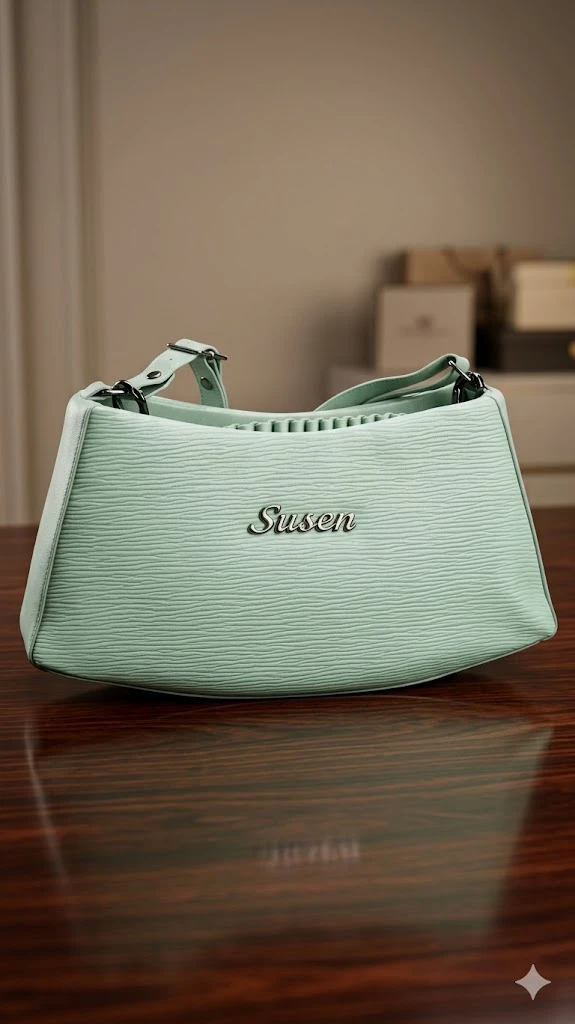 2. Designer Hardware: Features the iconic "Susen" metallic logo in a dark chrome finish, complemented by sturdy, adjustable buckle straps.